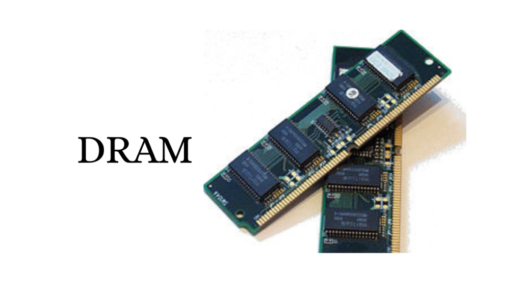 DRAM का पूरा नाम डायनमिक रैंडम एक्सेस मेमोरी है।DRAM में डेटा को स्टोर करने के लिए केपेसिटर का उपयोग किया जाता है ।DRAM की स्पीड धीमी ,सस्ती और ज़्यादा स्टोरेज क्षमता वाली होती है ।यह कंप्यूटर की मुख्य मेमोरी के रूप में उपयोग होती है ।