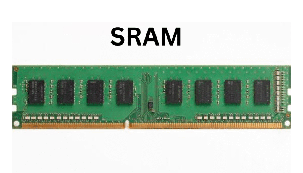 SRAM का पूरा नाम स्टेटिक रैंडम एक्सेस मेमोरी है ।SRAM में डेटा को स्टोर करने के लिए ट्रांजिस्टर का उपयोग किया जाता है ।SRAM, DRAM के मुक़ाबले में महँगी होती है । इसकी स्पीड DRAM के मुक़ाबले काफ़ी तेज होती है ।यह कंप्यूटर की कैश मेमोरी के रूप में उपयोग होती है ।